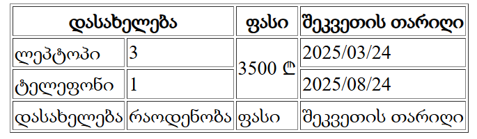 ახლა ვცადოთ და ორი უჯრა "3500₾" და "3200₾" გავაერთიანოთ